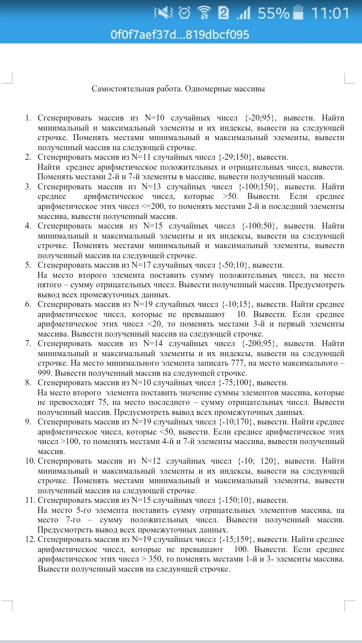 Сгенерировать массив из N=10 случайных чисел {-20;95}, вывести. Найти минимальный и максимальный элементы и их индексы, вывести на следующей строчке. Поменять местами минимальный и максимальный элементы, вывести полученный массив на следующей строчке.