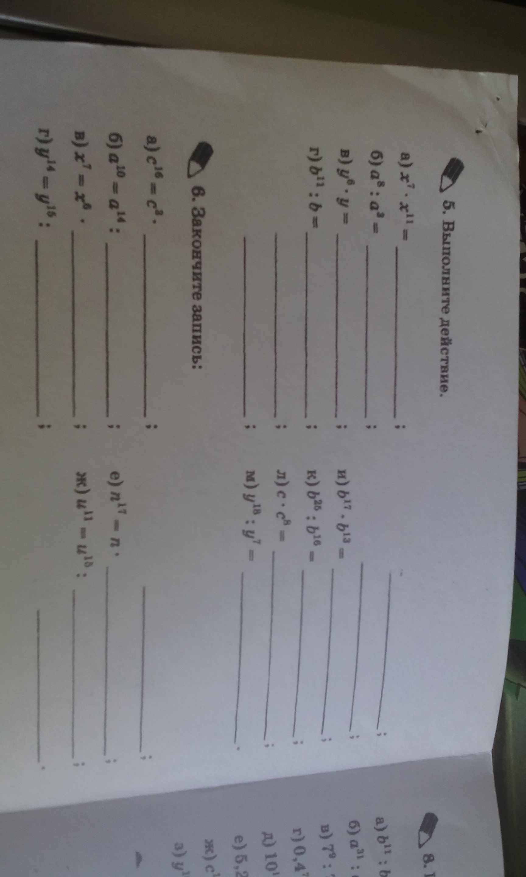 a) x 18 ,б) a 5 в) y 7 г) b10