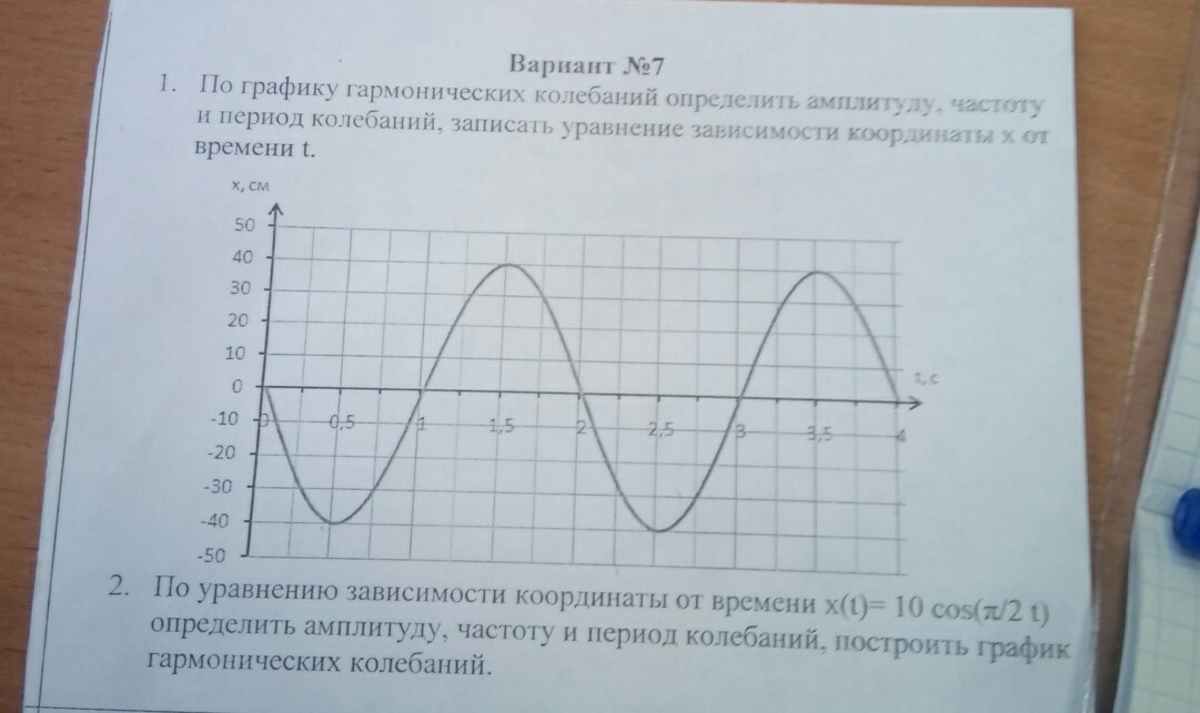 по графику гармонических колебаний определить амплитуду , частоту и период колебаний , записать уравнение зависимости координаты х от времени t