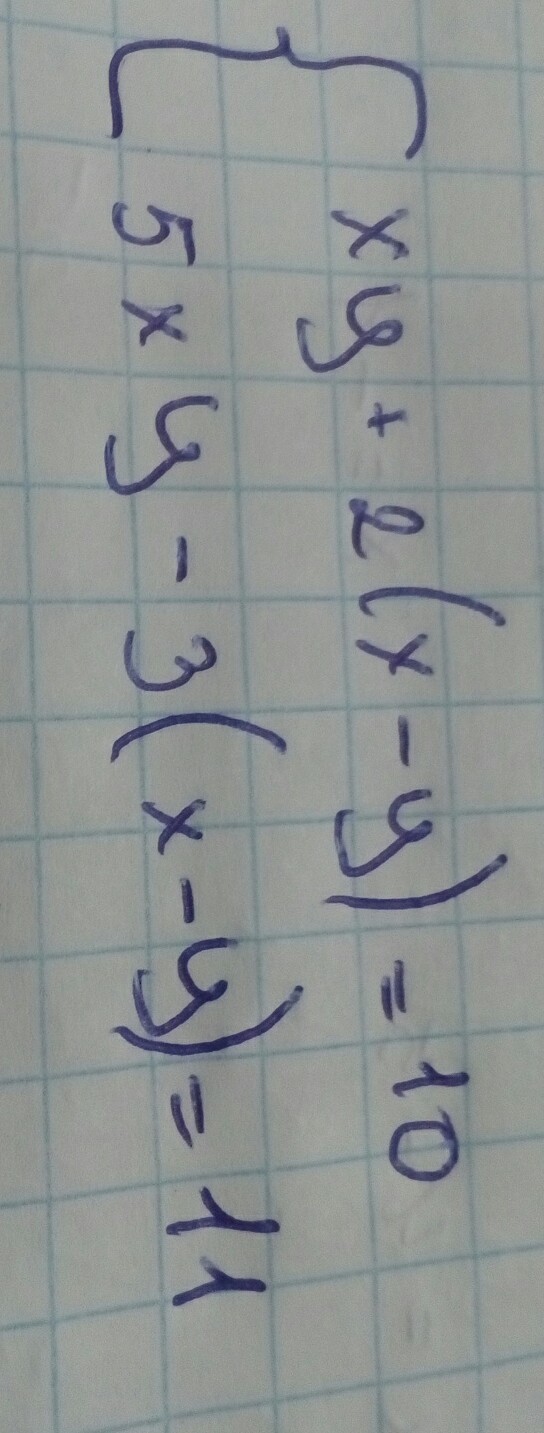 х -у = 3 Решаем подстановкой: х = (3 +у). Подставим в 1-е уравнение: