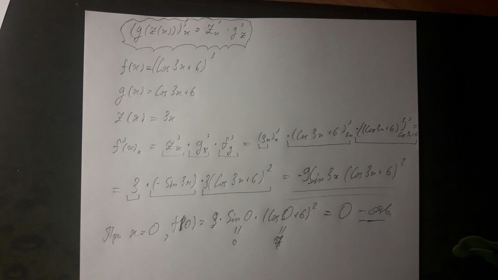 f'(0)=(3*(cos(3*0)+6)^2)*(-sin(3*0))*3