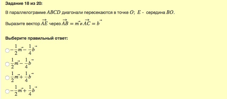 подставляем в формулу вектора, выражаем неравенство и получаев ответ 1/2mвектор+1/4bвектор т е (3)