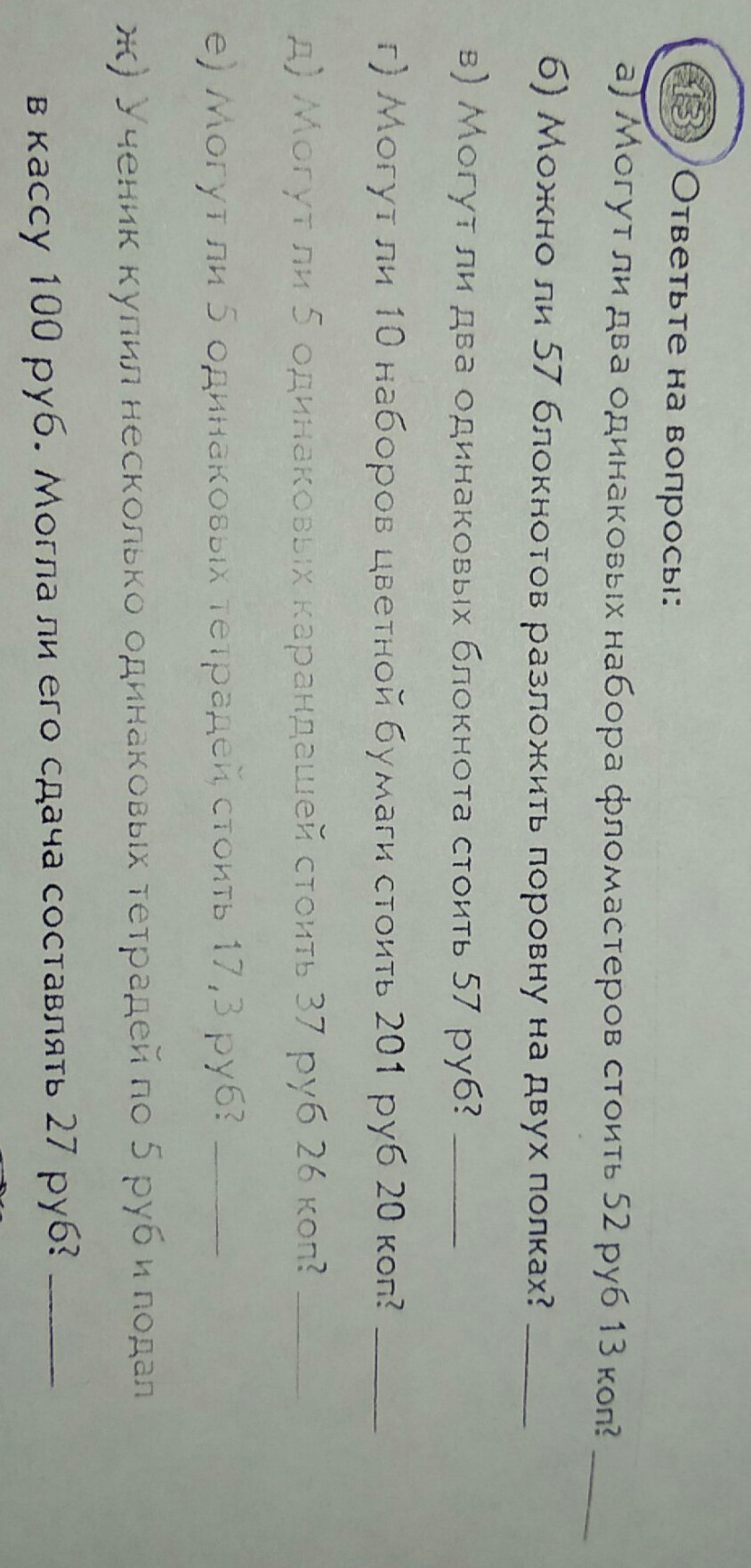 в) могут, 57:2=28 руб. 50 коп - за 1 блокнот