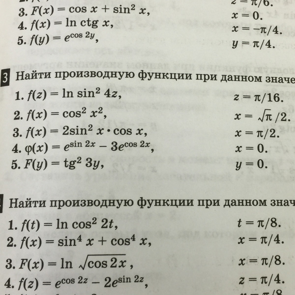 при z=π/16 f'(π/16)=8(cos 4·π/16)/(sin4·π/16) =8