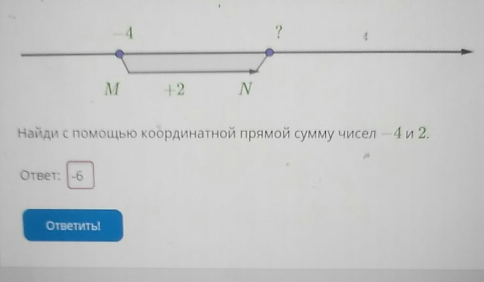 (-4+2)=2 ответ 2 складываем два числа с разными знаками - из большего вычитаем меньшее и ставим знак большего числа