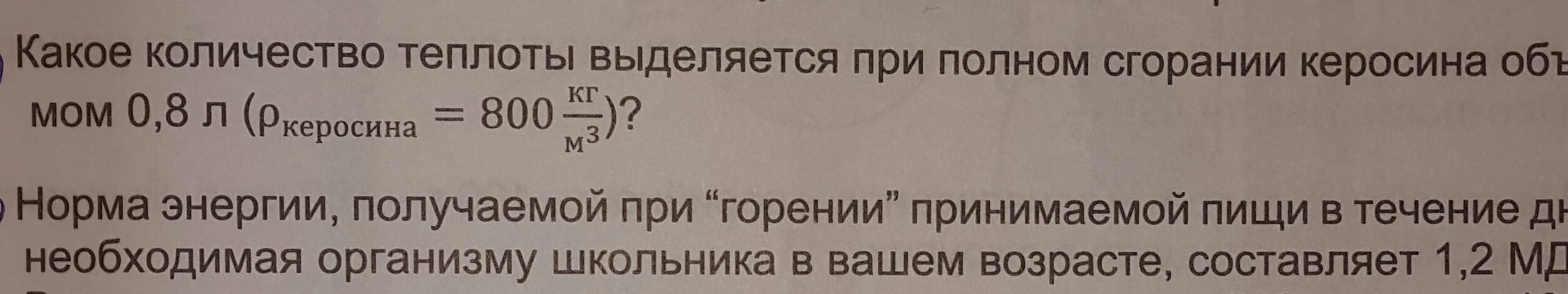 Какое количество теплоты выделяется при полном сгорании керосина объемом 0,8 л (pкеросина=800 кг/м3) ???