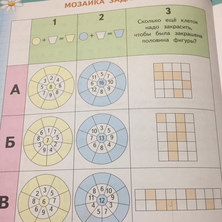 значит что бы было закрашено половина, не хватает 3 клеток. ОТВЕТ: 3 клетки