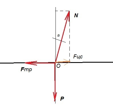 tg α = V² / (R*g) = 7,5² / (45*10) = 0,125