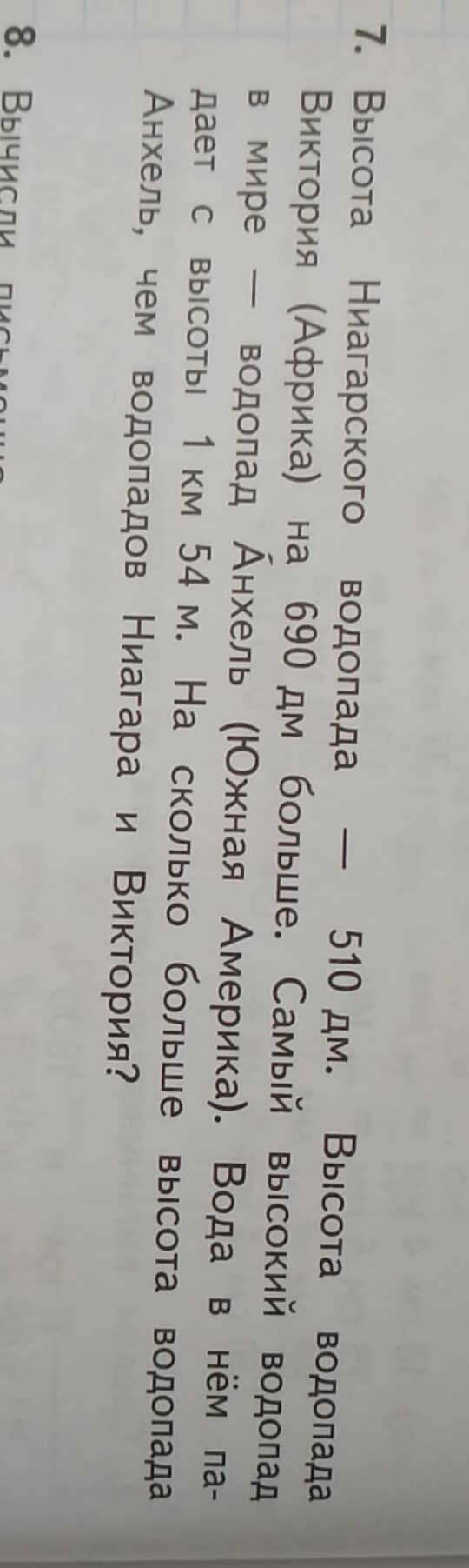 1) 510 + 690 = 1 200 дм - высота водопада Виктория