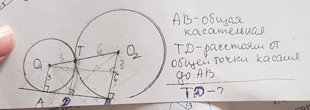 Треугольники О1ТК и О1О2Р подобные, так как О2В и ТD перпендикулярны прямой АВ, значит параллельны. Из подобия:
