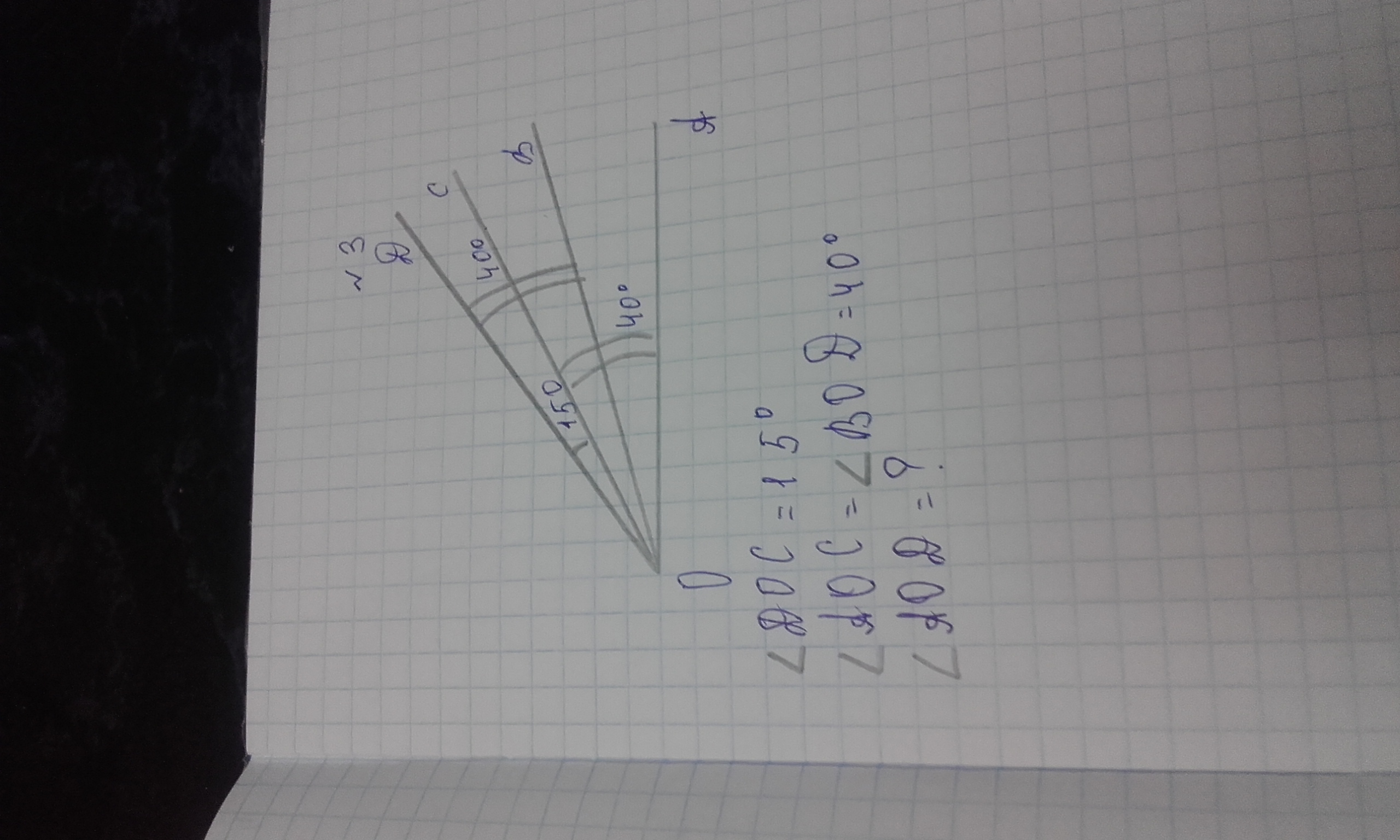 кут DOC +кутCOA=15 + 40 = 55градусов