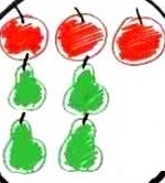 три яблока(рисунок)+ четыре вишни(рисунок)=?
