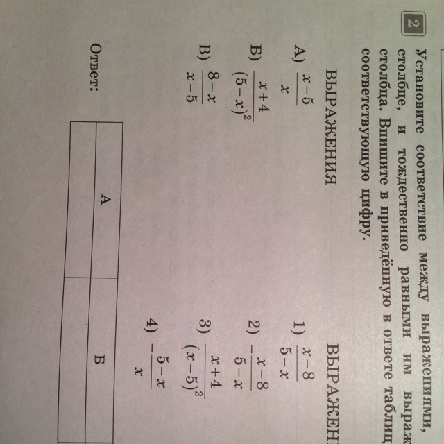 Установите соответствие между выражениями стоящими В первом столбце и тождественно равными им выражениями из второго столбца