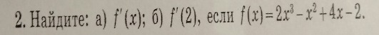найдите a)f '(x);б)f '(2),еслиf(x)=2x^3-x^2+4x-2