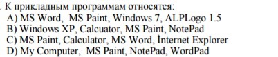 Я так думаю ответ D, так как My Computer, Paint, Notepad, Wordpad во всех компьютерах есть, тем более и на ноутбуках
