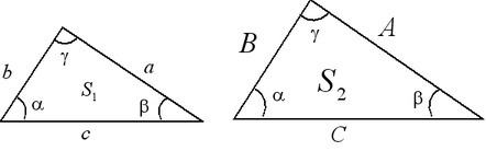 Подобными называются треугольники, у которых углы равны, а сходственные стороны пропорциональны.