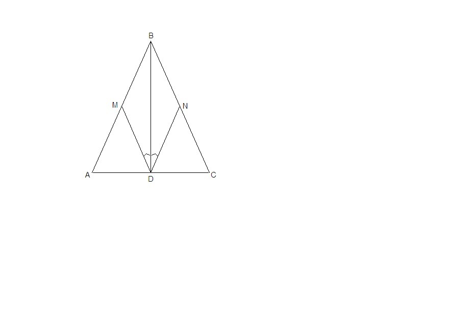 В равнобедренном треугольнике АВС, ВD-высота,проведенная к основанию.Точки M и N принадлежат сторонам AB и BC соответственно.Луч DB-биссектриса угла MDN,Докажите,что AM=NC
