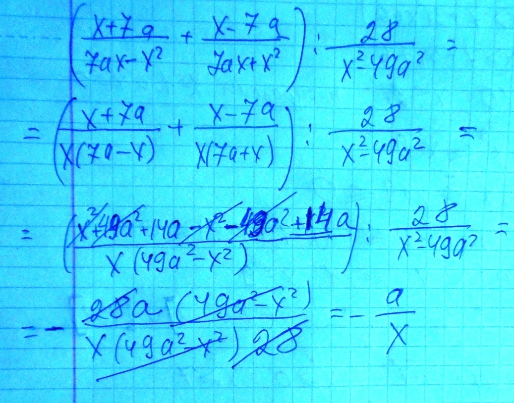 (x+7a/7ax-x^2+x-7a/7ax+x^2):28/x^2-49a^2