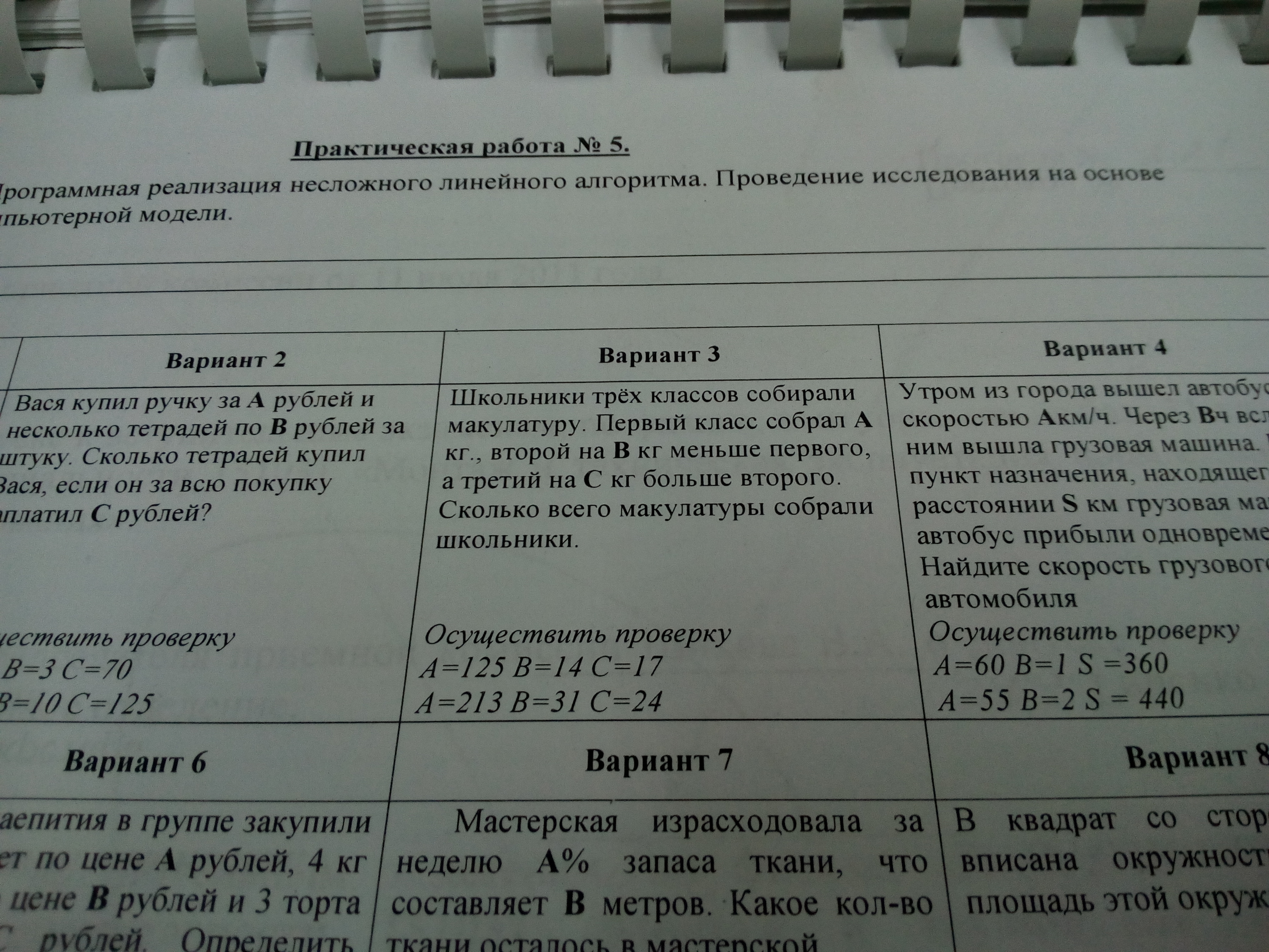 начало→ввод A, B, C→perviy:=A, vtoroy:=A-B; tretiy:=vtoroy+C;→вывод perviy, vtoroy, tretiy→конец