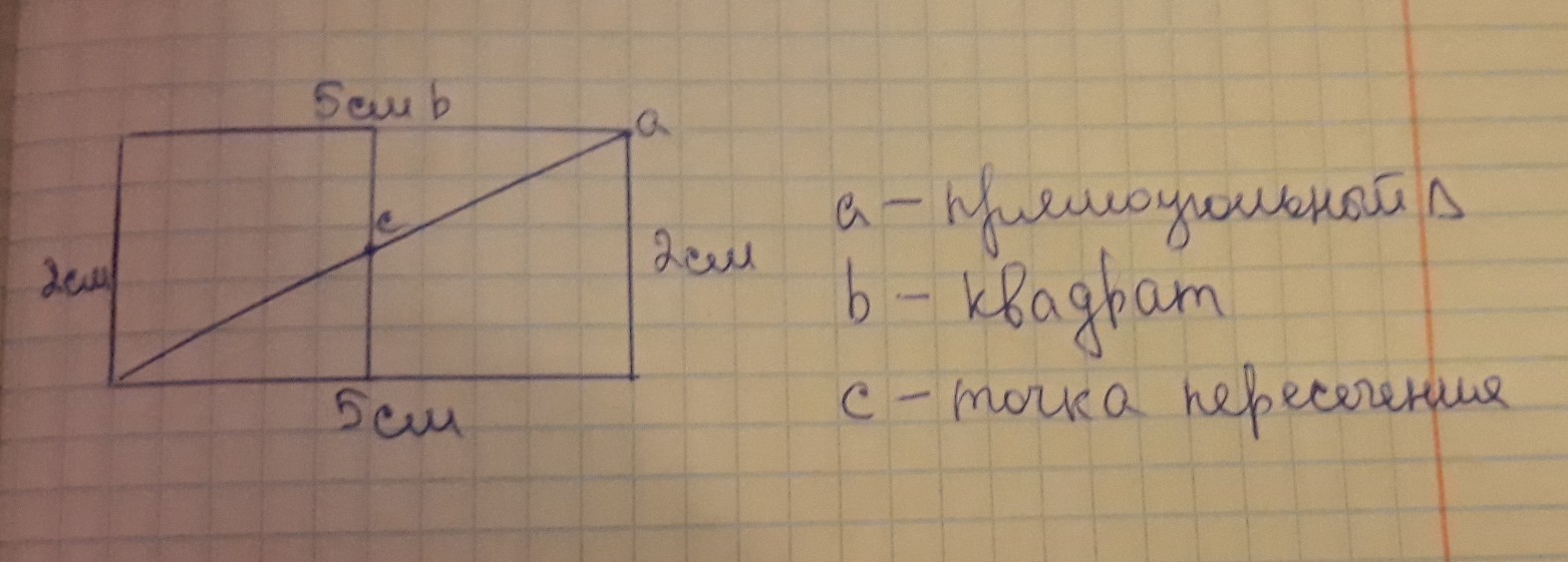 Измерь стороны прямоугольника.Начерти его в тетради.Проведи две прямые линии так,чтобы они разделили прямоугольник на два треугольника и два четырёхугольника.Обозначь точки пересечения буквами и выпиши названия фигур.
