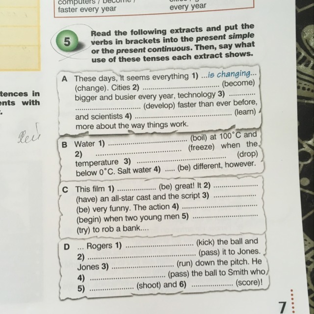 D) is kicking, is passing, is running, is passing, is shooting, is scoring