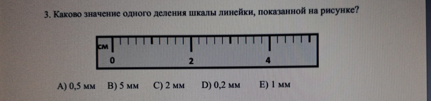 3. Каково значение одного деления шкалы линейки, показанной на рисунке?