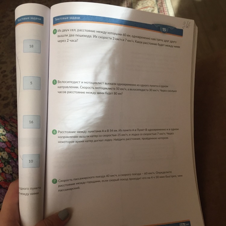 Также непонятно, почему было удалено решение по задаче №7. Решение было предложено такое 60(t-4.5)=40t ; 20t=270; t=13.5ч; S=40*13.5=540км