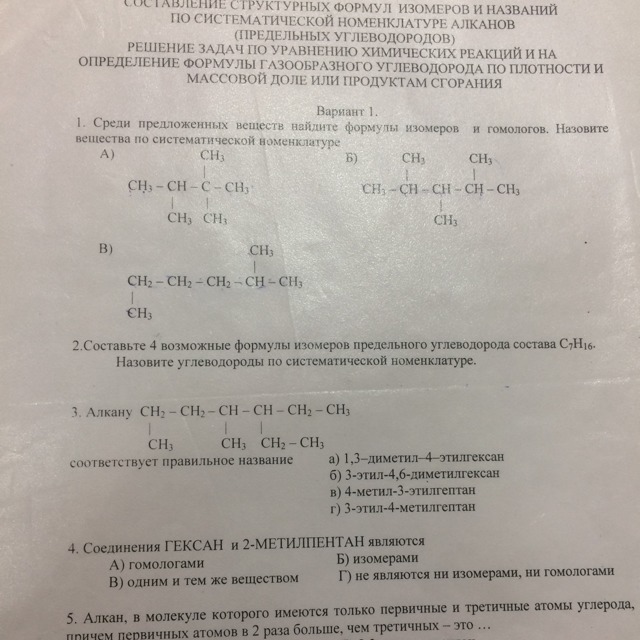 1.Изомеры а) 2,2,3-триметилбутан и в)2-метилгексан,