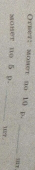 игра стоит 50 руб. уже есть монеты по 10 руб. и по 5 руб. он подал в кассу 8 дней чтобы оплатить покупку без сдачи Сколько штук монет по 10 руб. и сколько штук монет по 5 руб. заплатила жене