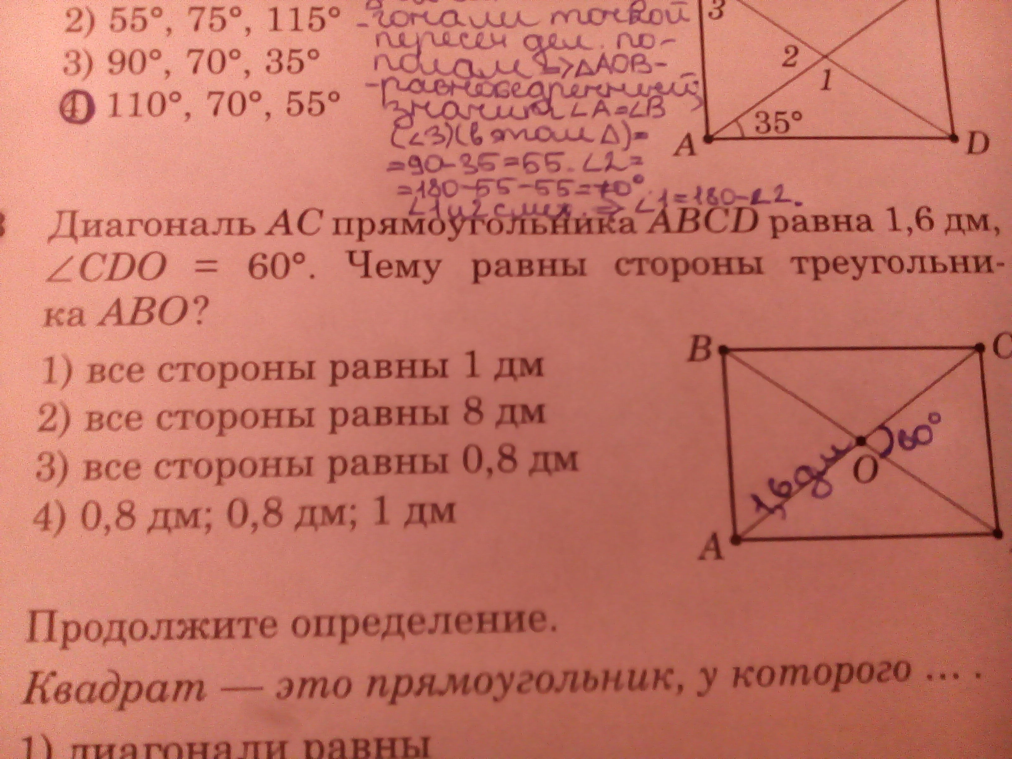 Диагональ AC прямоугольника ABCD равна 1,6 дм,