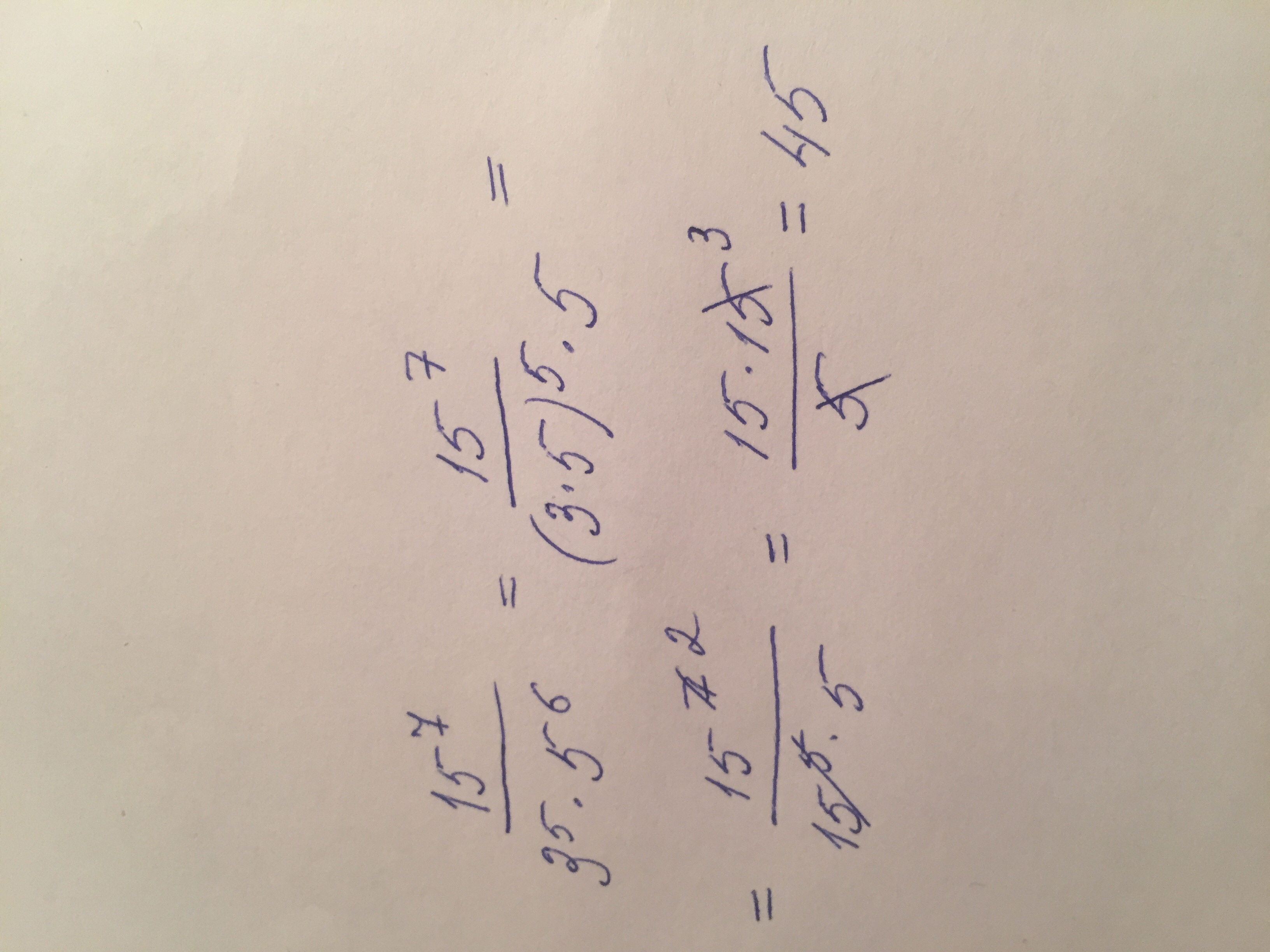 У нас 3^5 степени, а 5^6 степени. получается, что (3*5)^5 выносим, и от 5^6 остаётся просто 5