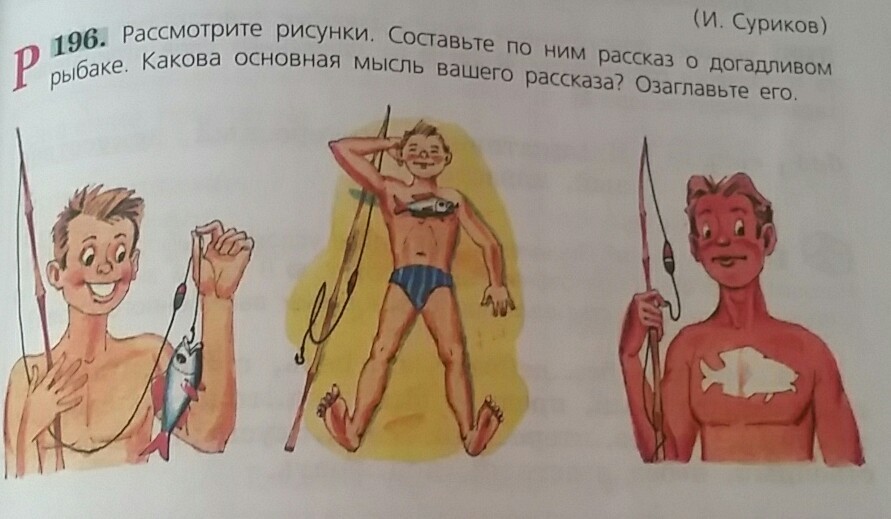 Он взял удочку,червей и пошел.Бросил он удочку в море и долго ждал.Вдруг что-то попалось на удочку.Рыбак взял удочку и там была рыба.Он положил удочку на песок,а рыбу мальчик положил на живот и заснул.Когда он проснулся рыба поджарилась на солнце вот поэтому он так сделал.Он съел рыбу.Она была вкусной.