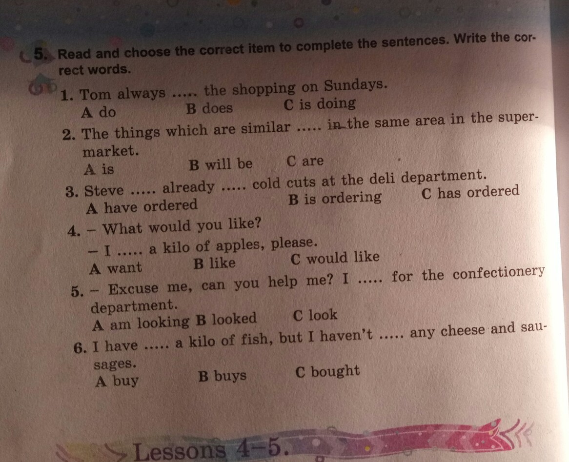 6. I have bought a kilo of fish but I haven't bought any cheese and sausages.