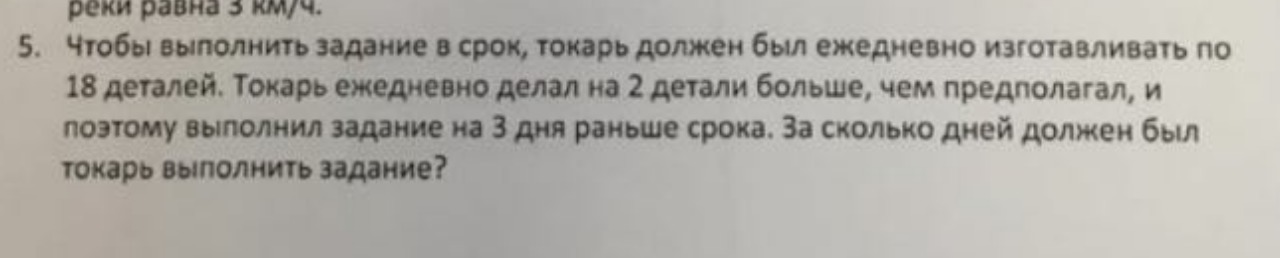 18*х=(18+2)*(х-3) , где х количество дней