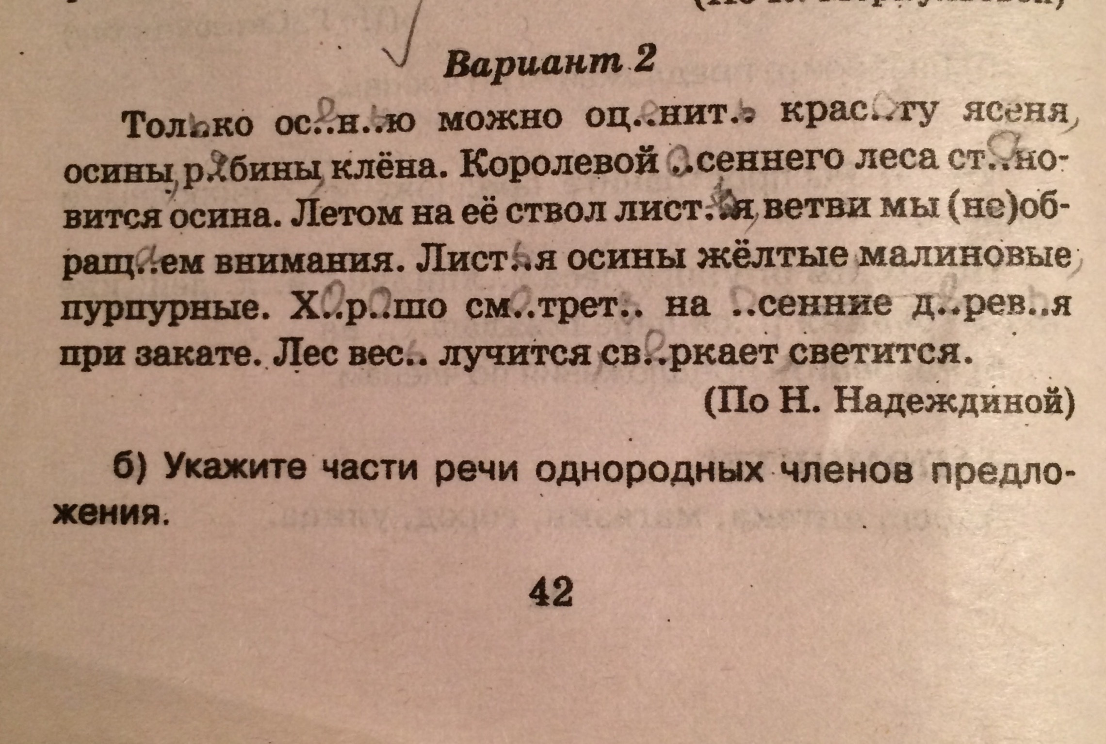 ясеня,осины,рябины,клёна-существительные(однородн.чл.)