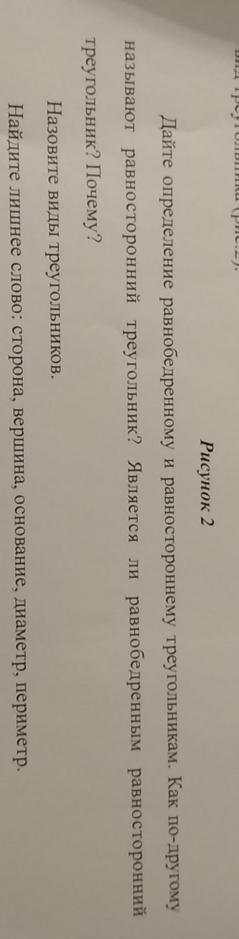 Равнобедренный треугольник - треугольник который имеет две равные стороны и угла при основании, равносторонний - треугольник, у которого все три угла и стороны равны.