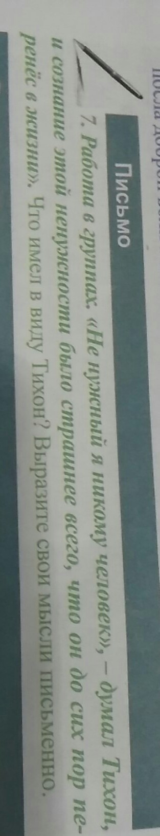 Ну....Может быть что у Тихон не имел много друзей,он думал что он никому не нужен.Или же может у него не осталось родных,и он думал что он не кому не нужен.Шо написала сама не поняла)