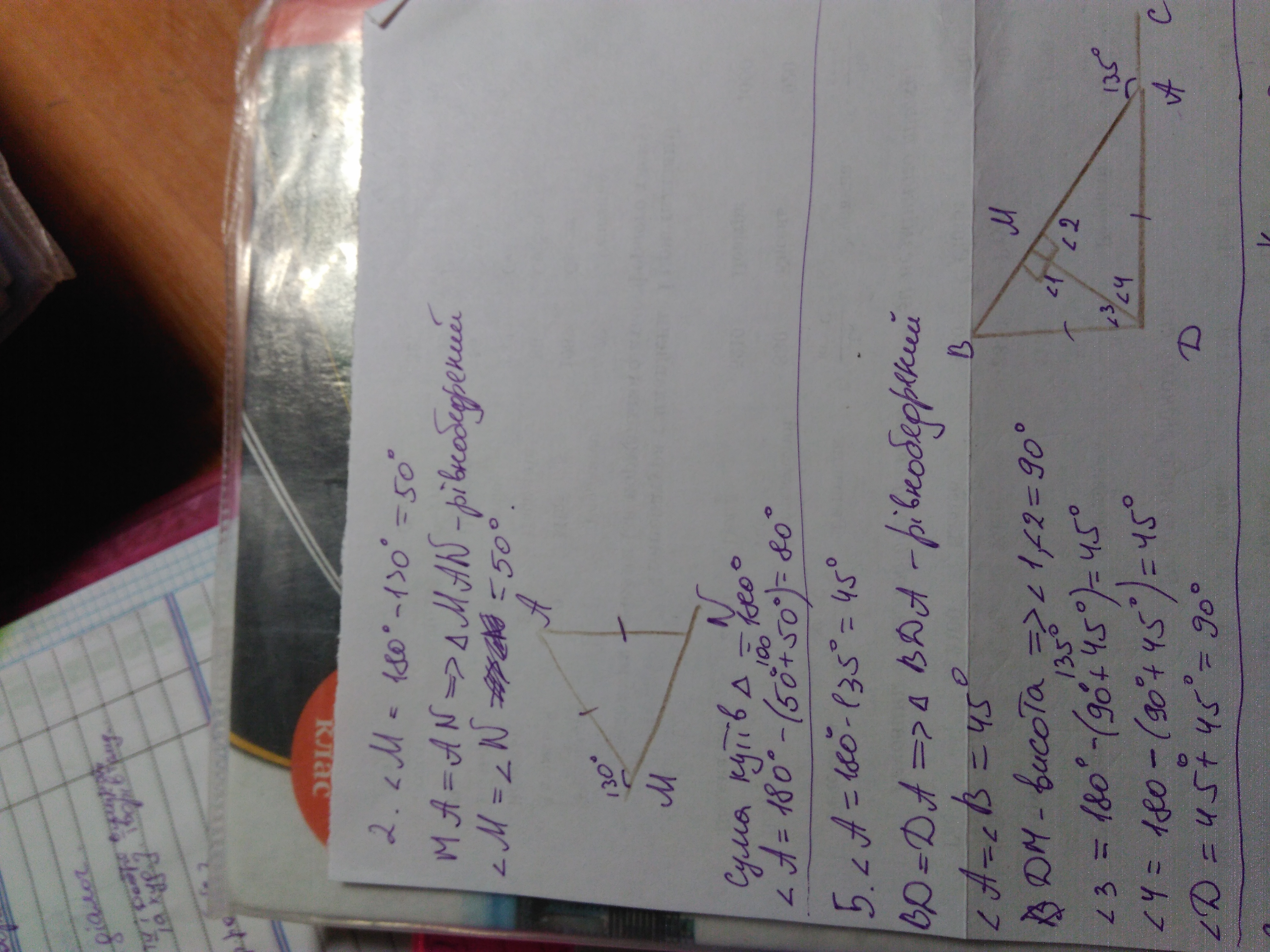 Кут А = 180° - 130° = 50°