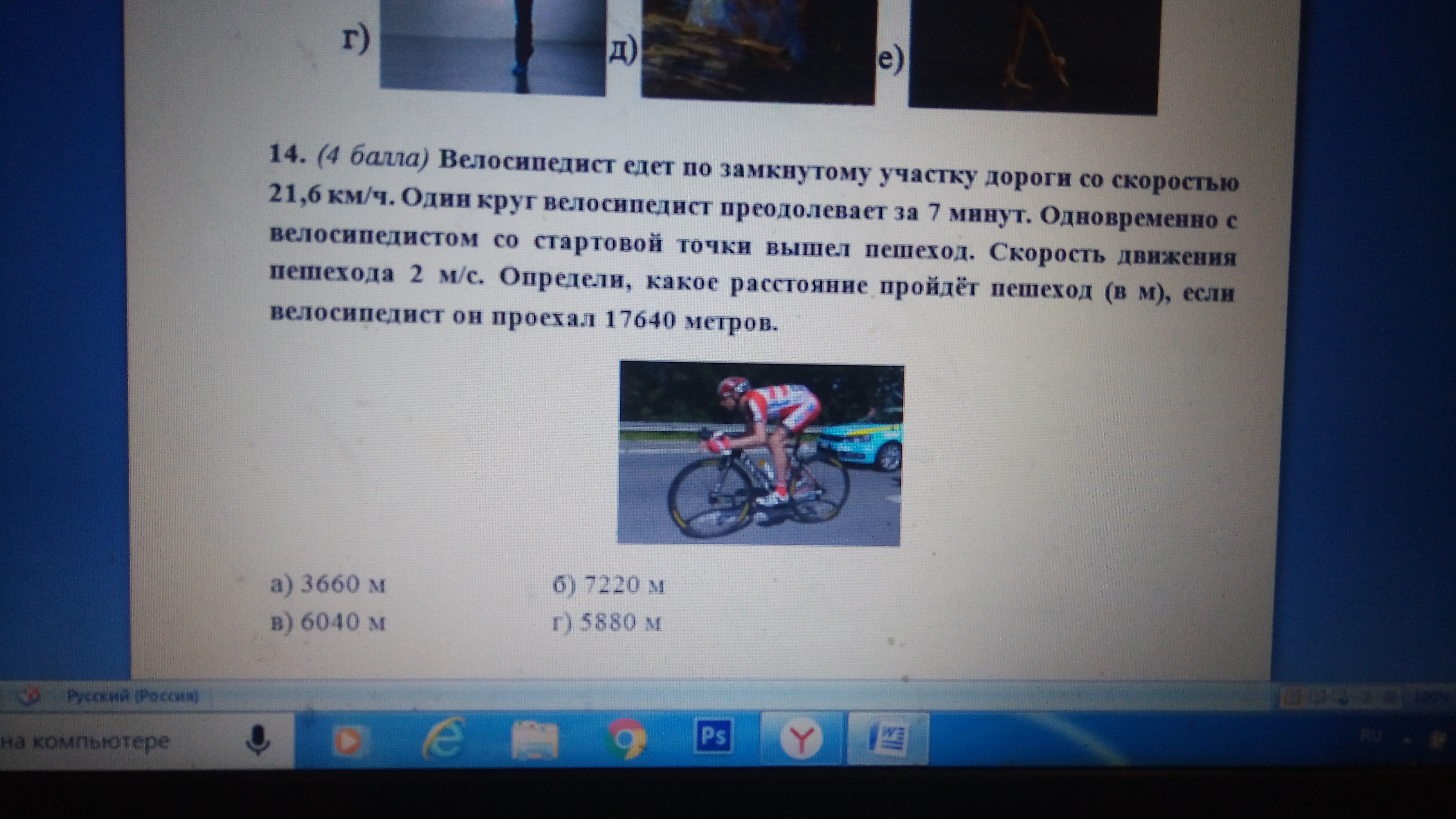 1)21,6 км/ч= 21,6*1000/1*6 м/мин=21600/60=360 м/мин-скорость велосепедиста