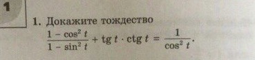 tg(x)* ctg(x)= 1 (sin²(x) +cos²(x))=1