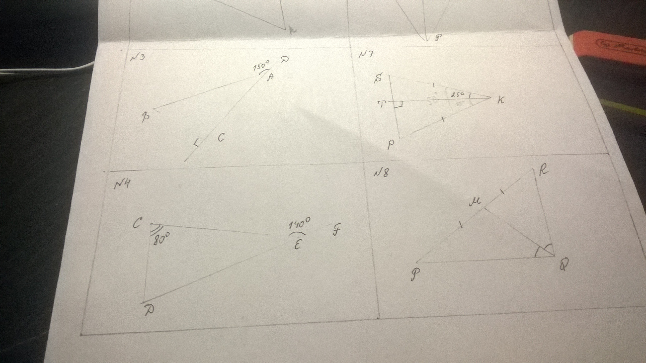 // В этом треугольнике QM - высота, биссектриса и медиана - это происходит, если треугольник равнобедренный(катеты равны) или равносторонний(все стороны равны)