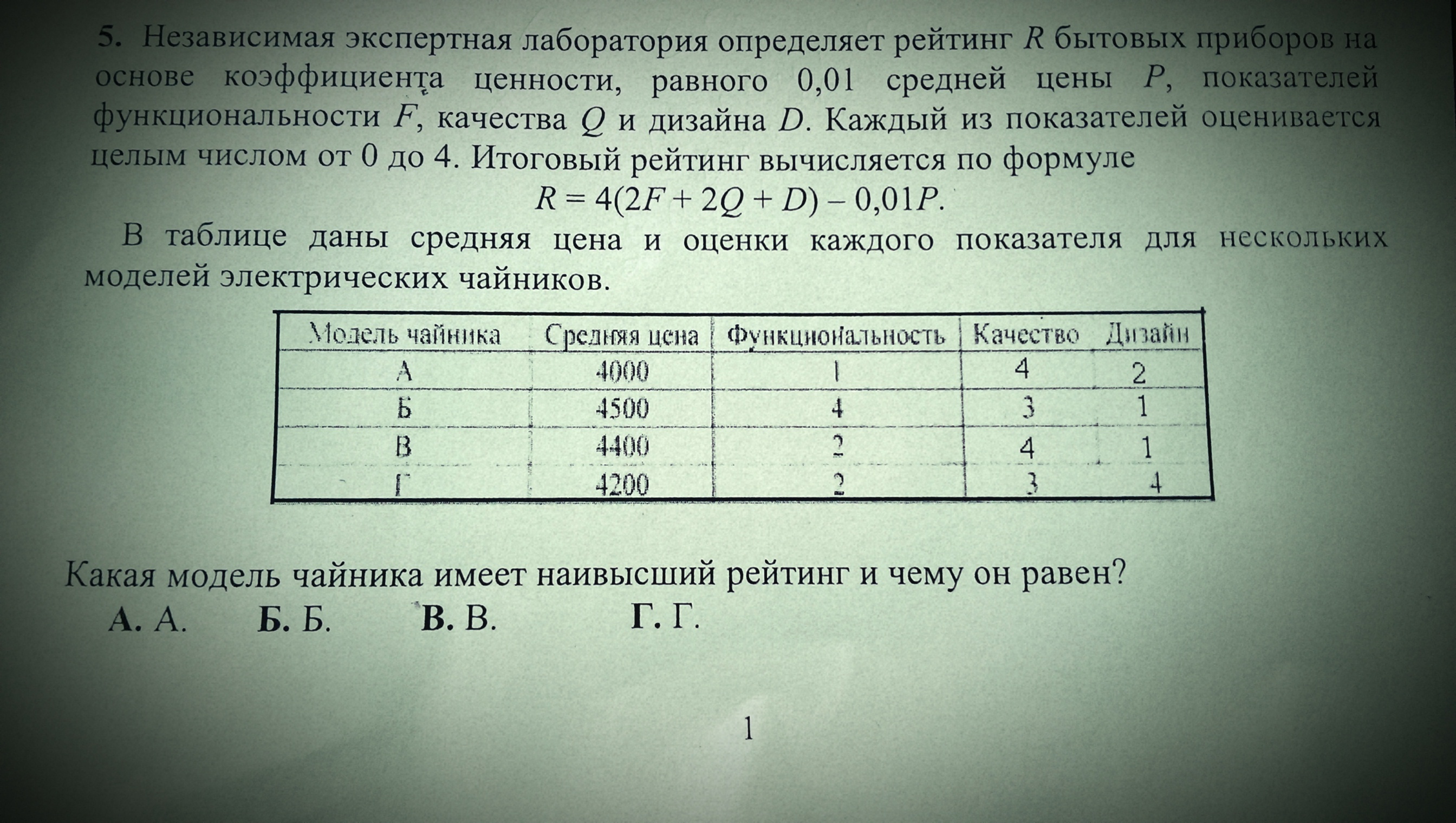 Ответ: наивысший рейтинг у модели Б. R = 15