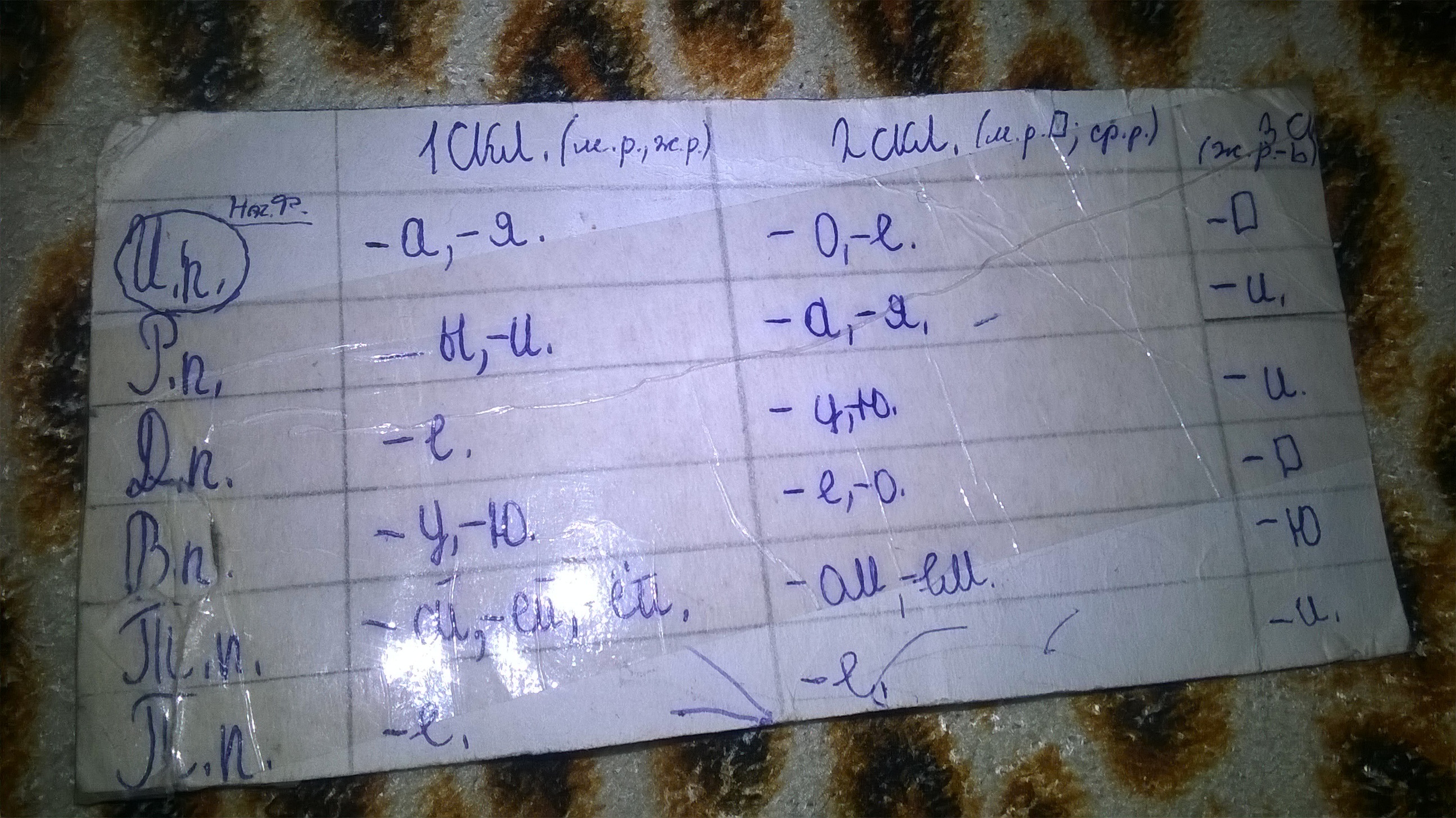 Вот есть у меня таблица склонений ,какие должны быть окончания