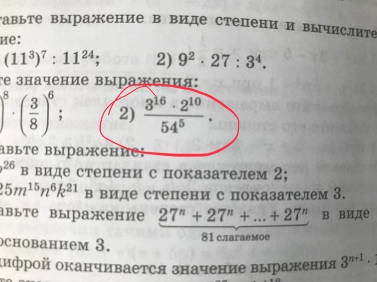 =3^16•2^10(2•3^3)^5=3^16•2^102^5•(3^3)^5=3^16•2^53^15=3•2^5=3•32=96