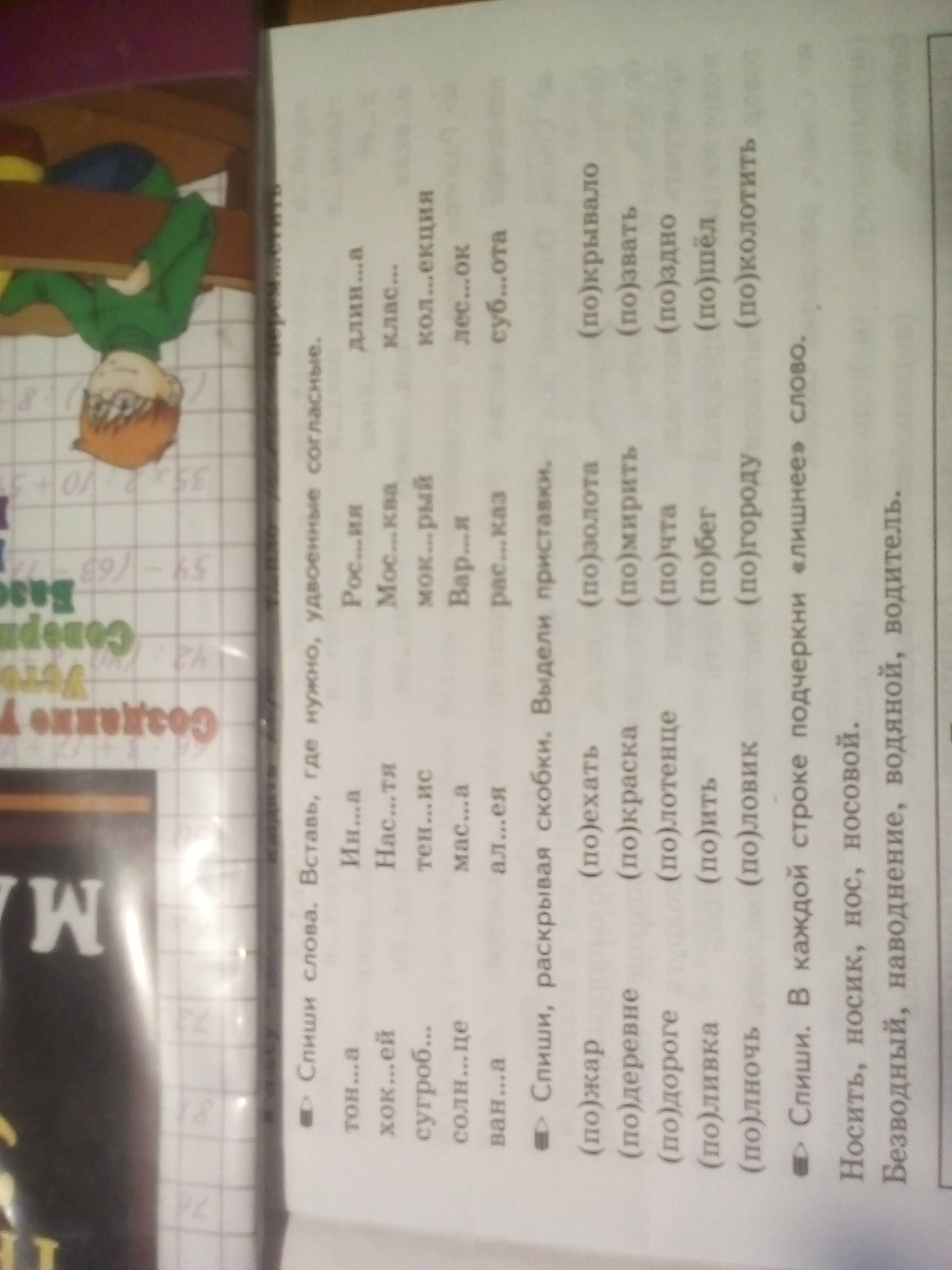 3. Носить (подчеркнуть), носик, нос, носовой.