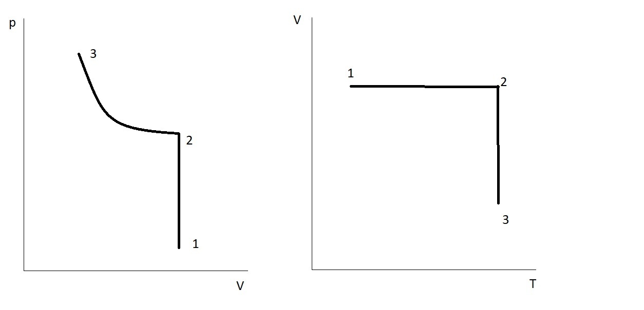 2-3 изотерма p*V=const Сжатие при постоянной температуре, объем уменьшается, давление увеличивается.