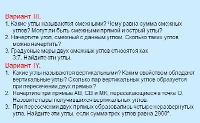 1) Смежные углы — два угла с общей вершиной, одна из сторон которых — общая, а оставшиеся стороны лежат на одной прямой (не совпадая). Сумма смежных углов равна 180°. Нет, не могут.