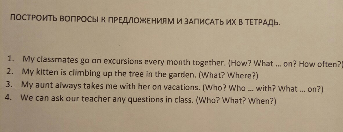 4. Who answers any questions in class? (Who asks any questions in class?) What can you ask your teacher in class? When can you ask your teacher?