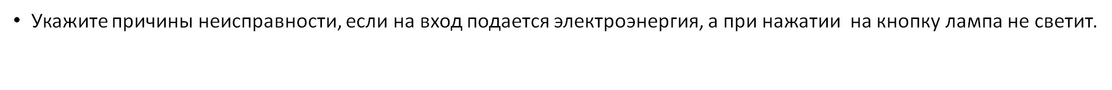 Укажите причины неисправности, если на вход подается электроэнергия, а при нажатии на кнопку лампа не светит.