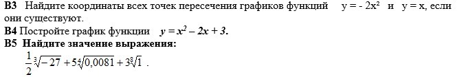В3 у=-2х² и у=х приравняем правые части и решим уравнение -2х²=х -2х²-х=0 х(-2х-1)=0 произведение равно 0,когда один из множителей равен 0.